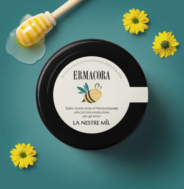 Etichetta realizzata per i vasetti di Miele prodotti dalla Cantina Ermacora di Ipplis di Premaricco (UD).