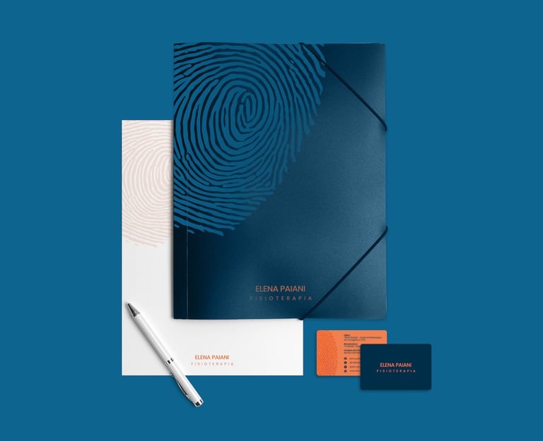 L’impronta richiama il tatto e la pressione, elementi fondamentali nel lavoro del fisioterapista, e si adatta ai diversi formati diventando icona, sfondo o pattern. Nei materiali cartacei viene valorizzata con un effetto 3D che ne enfatizza la dimensione sensoriale.